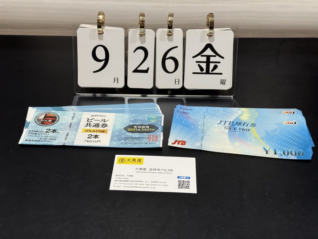 - ビール共通券 びん券 633ml 2本 JTB旅行券 ナイストリップ 1000円 金券 ギフト券 商品券 買取お買取りさせて頂きました商品券をご紹介させていただきます。 ビール共通券 びん券 633ml 2本 JTB旅行… 続きを読む: ビール共通券 びん券 633ml 2本 JTB旅行券 ナイストリップ 1000円 金券 ギフト券 商品券 買取