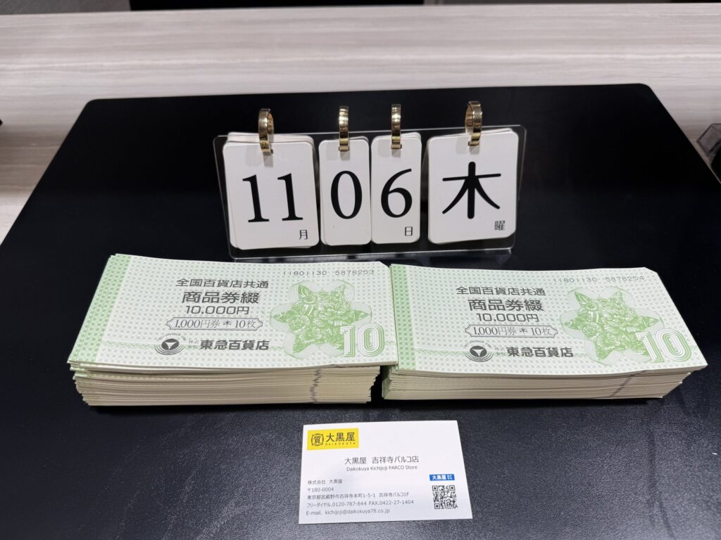 お買取りさせて頂きました商品券をご紹介させていただきます。