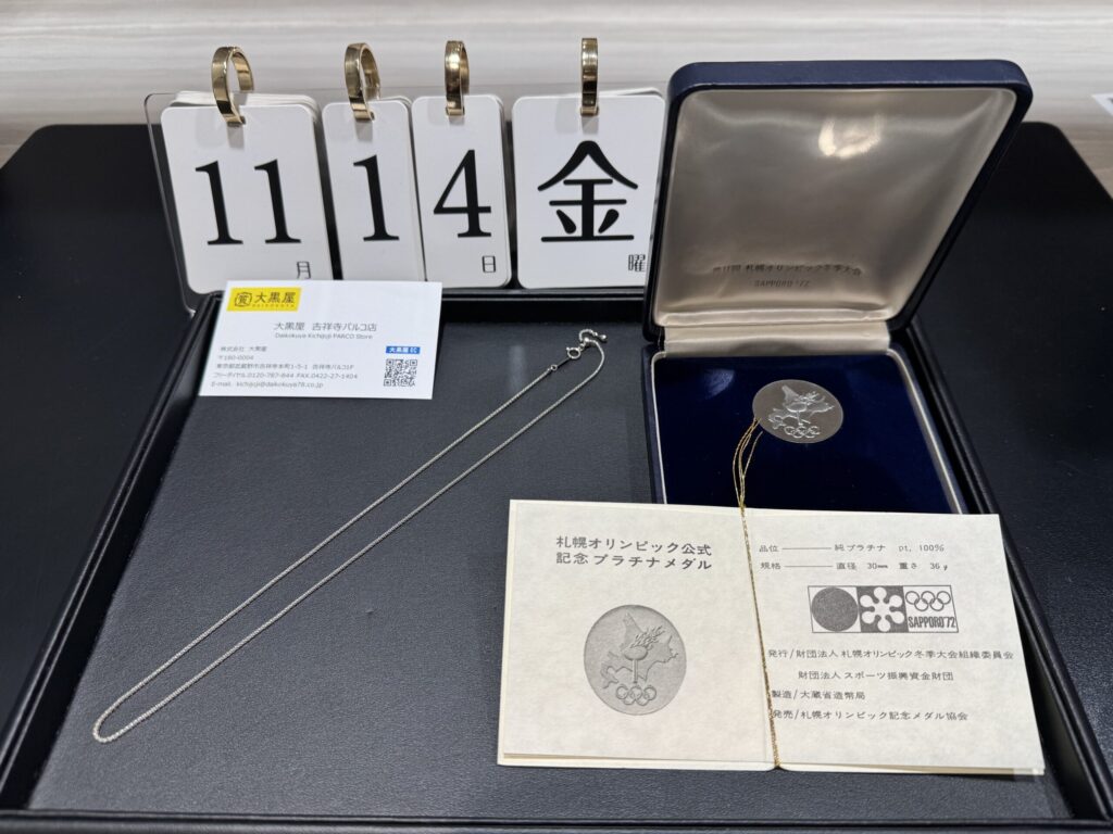 コイン 記念メダル 第11回 札幌オリンピック冬季大会 プラチナ PT1000 貴金属 ジュエリー ネックレス K18ホワイトゴールド 買取