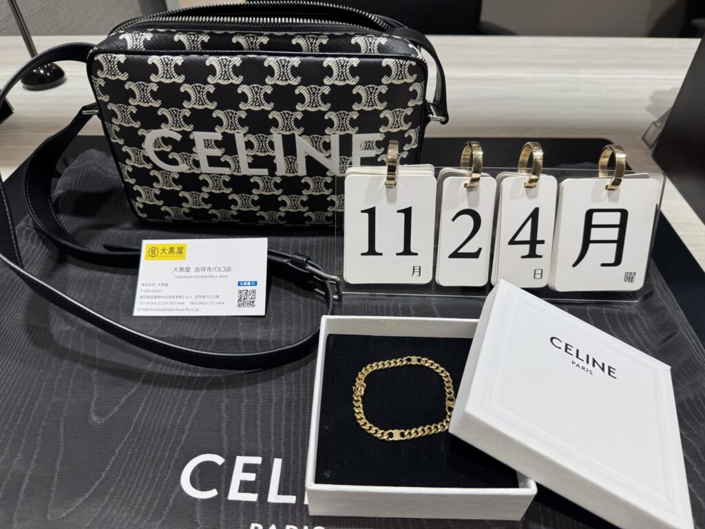CELINE セリーヌ トリオンフ ミディアム メッセンジャーバッグ ブラック/ホワイト PVC/カーフ グルメット ブレスレット ゴールド GP 買取
