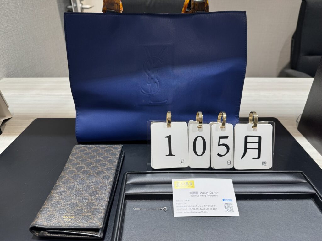 イヴ・サンローラン YSL トートバッグ ブルー ナイロン/レザー CELINE セリーヌ トリオンフキャンバス 長財布 ジュエリー チェーンアジャスター PT850 プラチナ 買取