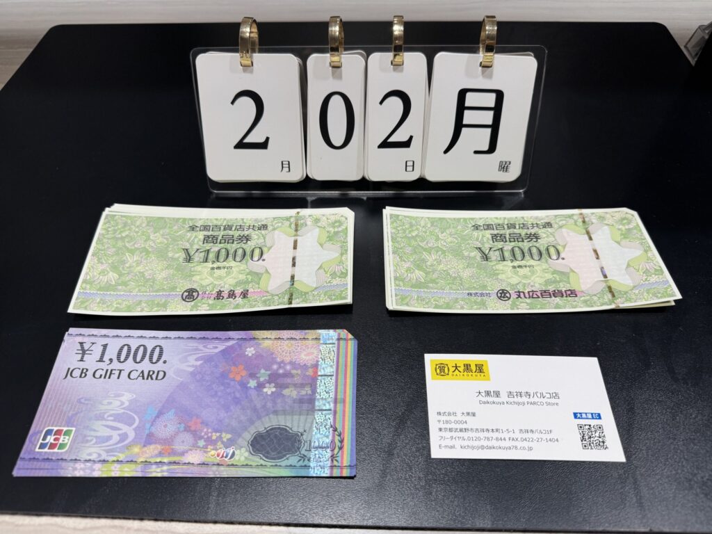 お買取りさせて頂きました商品券をご紹介させていただきます。