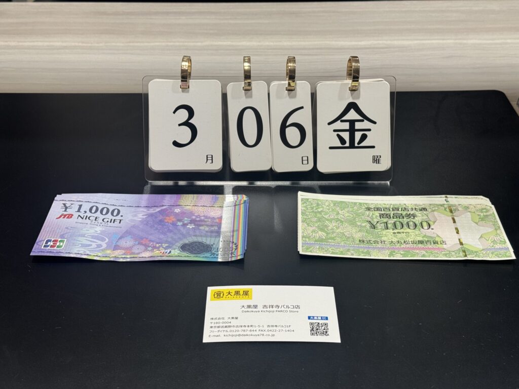 お買取りさせて頂きました商品券をご紹介させていただきます。