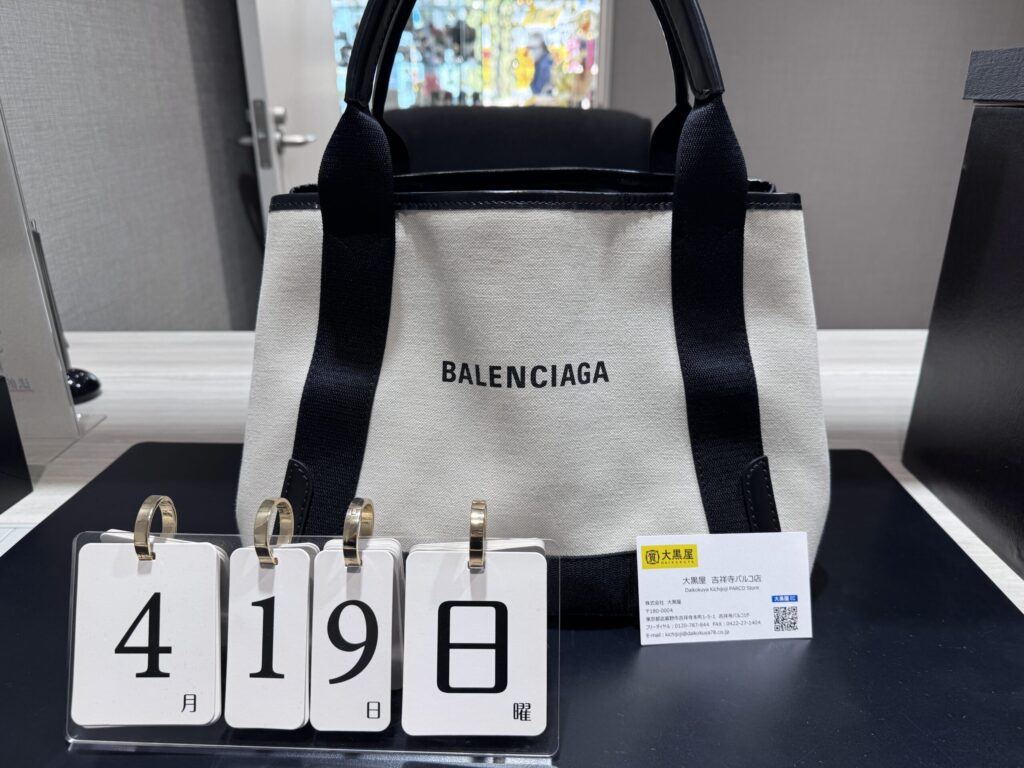 BALENCIAGA バレンシアガ ネイビーカバスS ホワイト/ブラック キャンバス/カーフ ハンドバッグ 買取